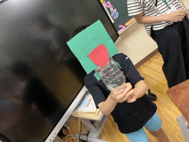 〇〇すくいでは、魚だけでなく自分のすくいたいものを自由に考えました。射的は思い思いのキャラクターをペットボトルで作りました。