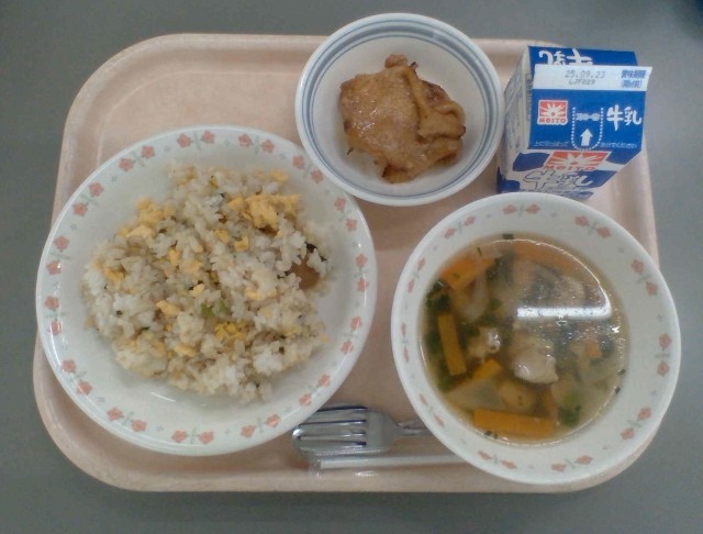 フライドライス、フリフリチキン、チキンロングライス、牛乳
