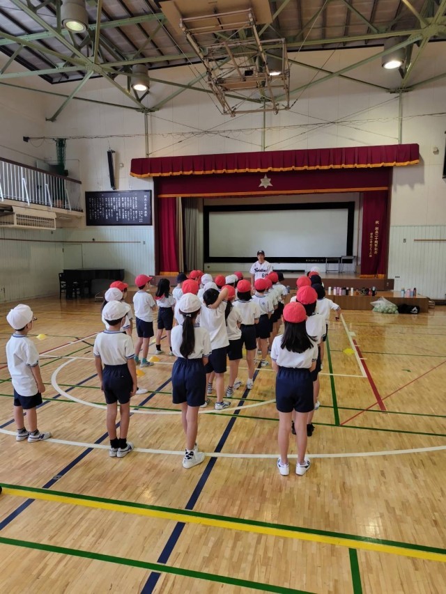ヤクルトスワローズのプロの選手をお招きし、ボールの投げ方教室を行いました。