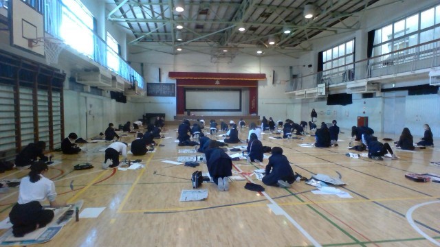 今年も年明け早々に体育館で席書会を行いました。