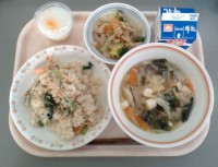 カレーピラフ 白菜と肉団子のスープ りんご 牛乳