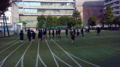 休み時間の校庭遊びは、学年で使用割り当てを決めるなど密集を避けるための工夫をしています。晴天が続き、外遊びを楽しむ児童が多く見られます。
