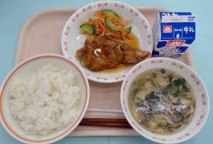 ごはん 豚からあんかけ 切干大根のナムル もずくと豆腐のスープ 牛乳