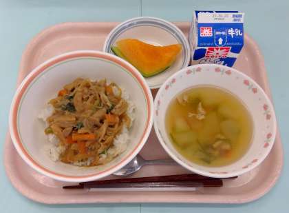ごまみそ豚丼 冬瓜汁 メロン 牛乳