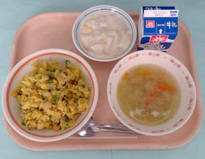 カレーピラフ ABCマカロニスープ フルーツヨーグルト 牛乳