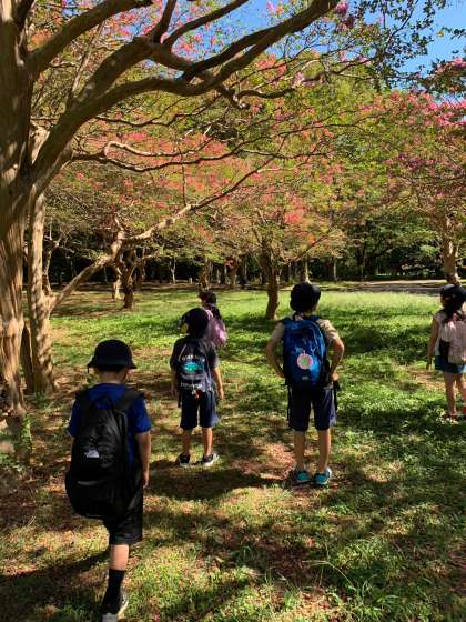 9月1日(金)に、代々木公園へ行きました。春には見られなかった虫や花を見つけることができました。その後、学校に戻って鬼ごっこやだるまさんが転んだをして楽しく遊びました。