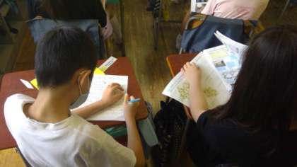 3年生は、自分たちの住む渋谷区の様子について学習します。この日は、これまで学習したことをまとめ、ポスターを作っていました。