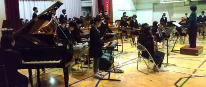 それぞれの曲の雰囲気にあわせて演奏を工夫し、3曲目の「朝礼体操」では、運動会でも踊ったダンスパフォーマンスを見せ、流石6年生という表現になりました。