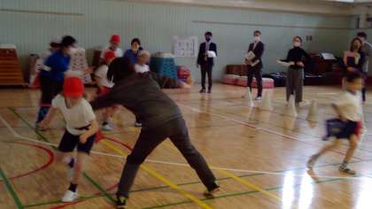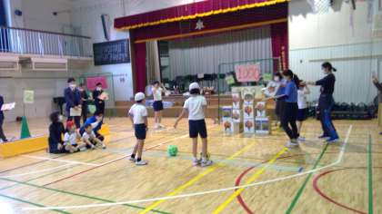 11月25日(水)に校内研究授業(わかくさ学級『たのしくボールをけろう』」)を行いました。ボスを倒してステージをクリアしていくようなゲーム性を取り入れたことで、主体的に運動に取り組む様子が見られました。