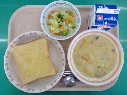 ハニートースト コーンシチュー チーズサラダ 牛乳