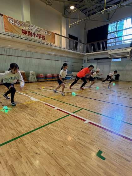 短距離走の合図は、ライトで行うことを知り、実際に走ってみました。目で見て動くという体験をして、様々な工夫をしていることに気付いたようです。「デフリンピックを応援したいです!」という声が聞かれました。