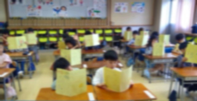 6年生からプレゼントしてもらった校歌の歌詞カードを見ながら 校歌の練習をしました。