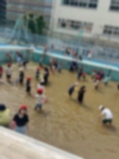 はじめはおそるおそる水の中に入っていった子供たちでしたが、すぐに夢中になり、たくさんのヤゴをプールから救出させることができました。