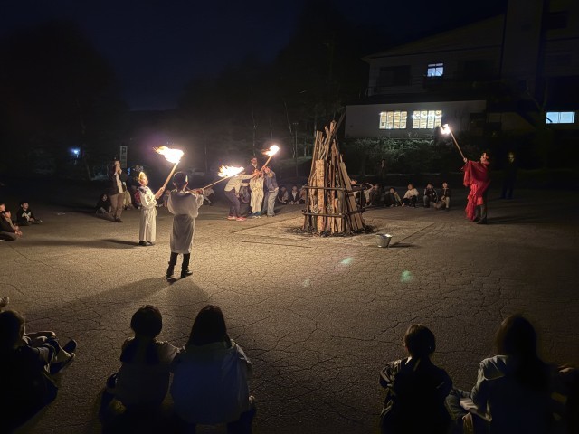4年生は、火の神から、協力・思いやり・挑戦の3つの火を授かりました。