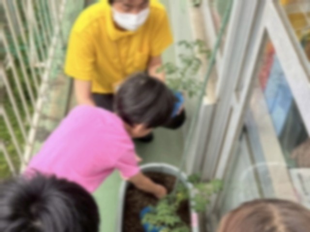 一人一人大切にミニトマトなどいろいろな野菜の苗を植えました。