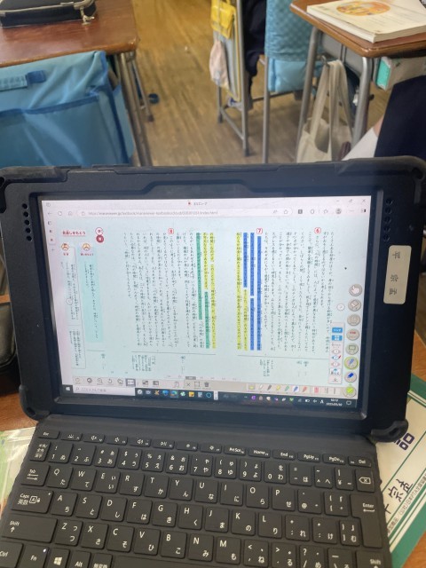 国語の学習では、デジタル教科書を活用して学んでいます。
