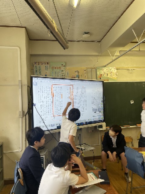 デジタル教科書を示しながら、自分の考えを説明する様子も見られました。