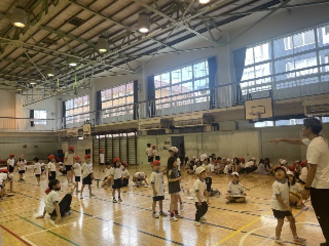 ペアの1年生に丁寧に話したり、動き方のコツを教えてあげたりする6年生の姿が見られました。