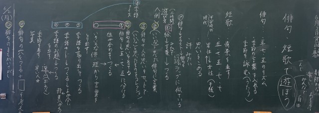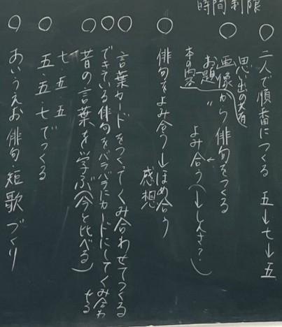 国語では、俳句・短歌の学習が始まりました。(2組、3組です。1組はこれから)