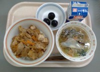 プルコギ丼、ひじきのナムル、トックスープ、牛乳