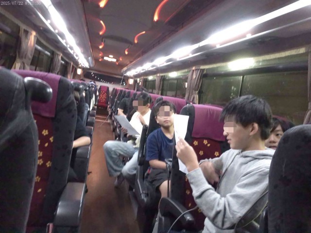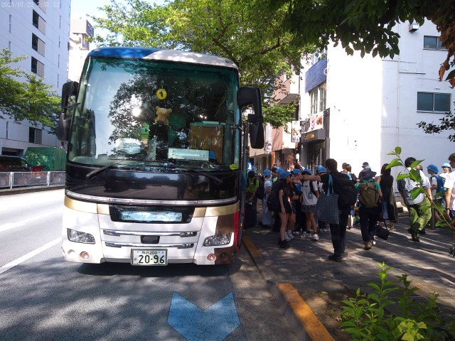 出発式の後、バスに乗り、首都高速、東北道を通っています。1組2組ともにバスレクでとても盛り上がっています。