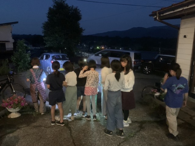 夕飯BBQの後は、宿ごとに星空観察や散歩に出かけました。飯山の空は澄んでいて星がよく見えました。