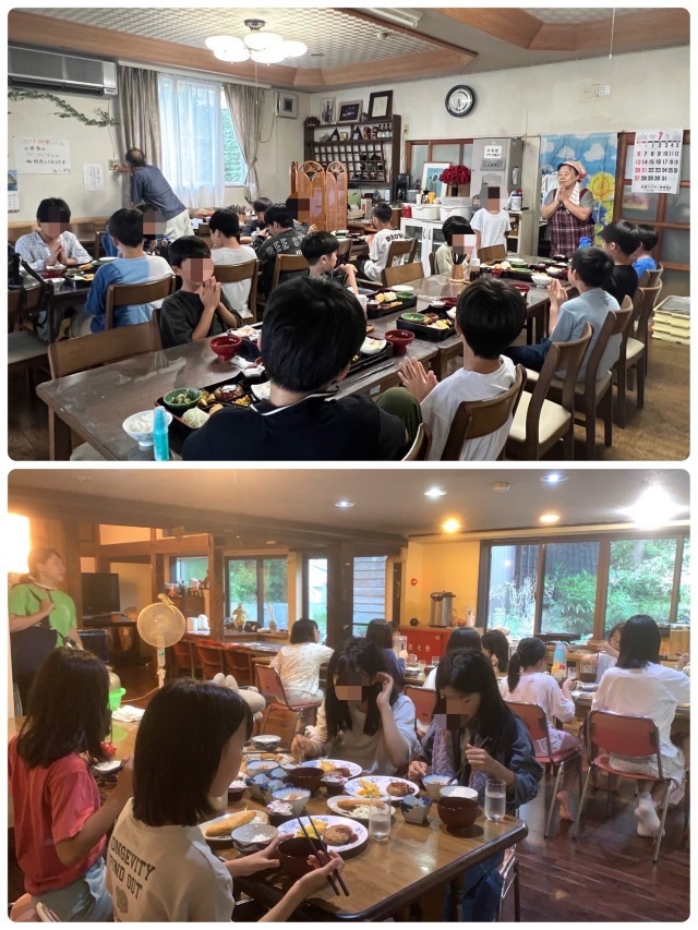 カヌー体験から帰ってきて入浴をし、部屋でのんびり過ごしました。民宿へのお礼の色紙を書いたり、持ってきたカードゲームで遊んだりしました。