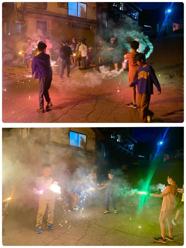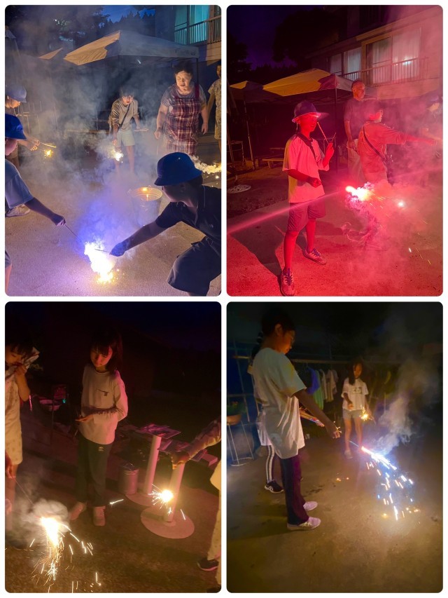 夕飯後は花火です。安全に気をつけながら楽しく花火をしました。