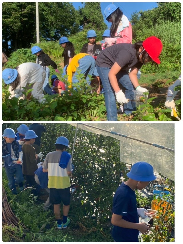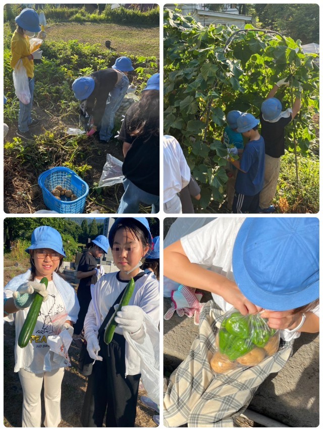 飯山その11 公開日 2025/07/28 更新日 2025/07/28 学校日記 おはようございます。3日目の朝です。晴れています。今日の朝は野菜摘みです。それぞれの畑にある野菜の収穫体験です。ピーマン、ナス、じゃがいも、きゅうり、ズッキーニ、トマトなどなどを収穫しました。野菜がどうなっているか、花や色はどんなかを感じながら収穫しました。宿に戻り、仲良く分けました。お家に持って帰ります。そして飯山最後の朝食です。その後は荷物整理、退村式です。 +1