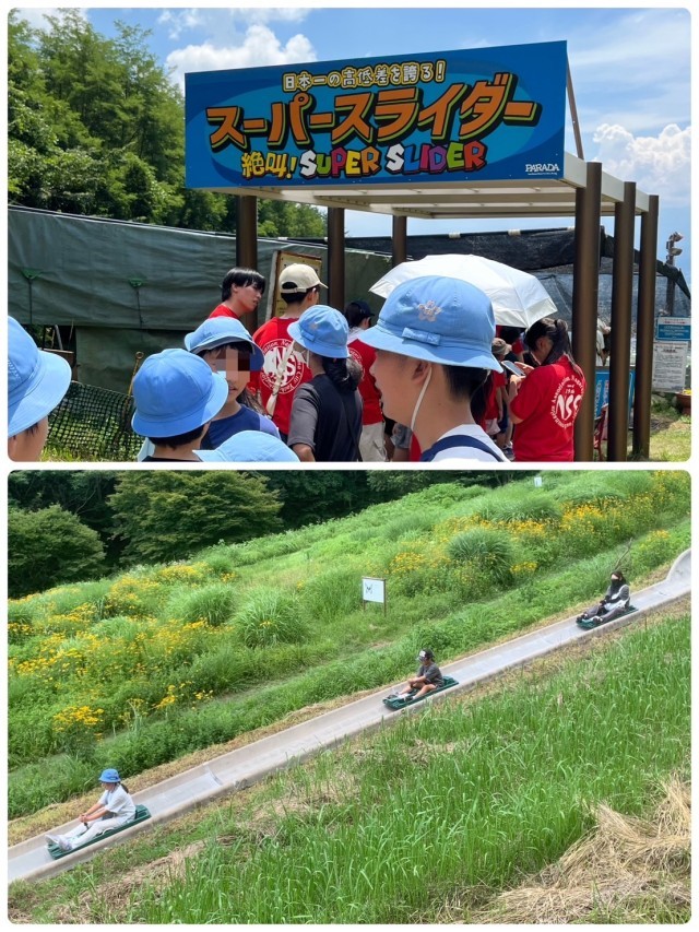 バスで走り、飯山の自然ともお別れです。上信越道を通ってパラダに到着しました。お昼を食べてからいよいよスライダーに挑戦です。