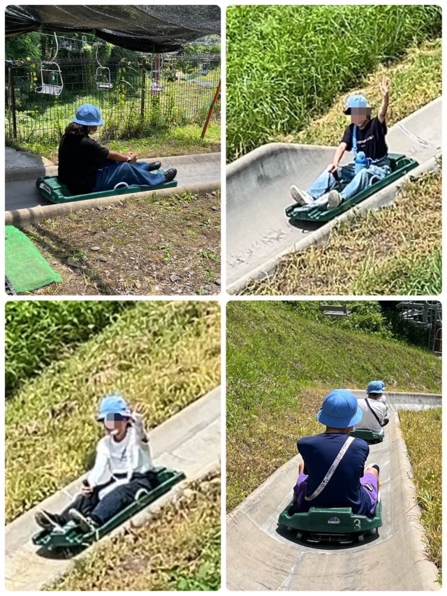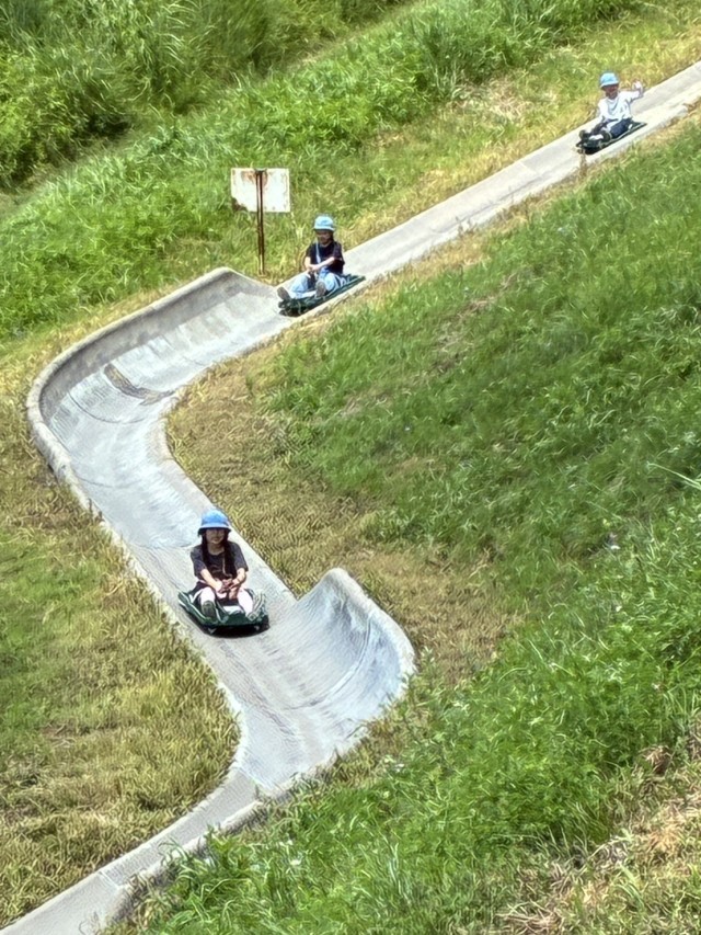 リフトに乗って上に着き、そこから1人ずつスライダーに乗りました。ブレーキレバーを上手く操作しながら楽しく滑りました。意外にスピードが出ました。