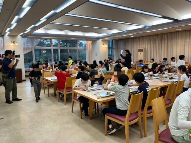 17時に夕べの集いがあり、宿泊客が集まって夕会を行います。臨川小が急きょその司会をすることになり、とても上手にできました。学校の紹介もしました。