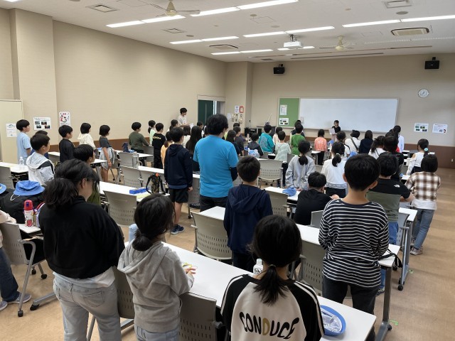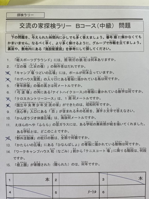 その後は、探検ラリーです。涼しい中、広い広い施設内を、様々なクイズに挑戦しながら回ります。グループで協力して考えました。