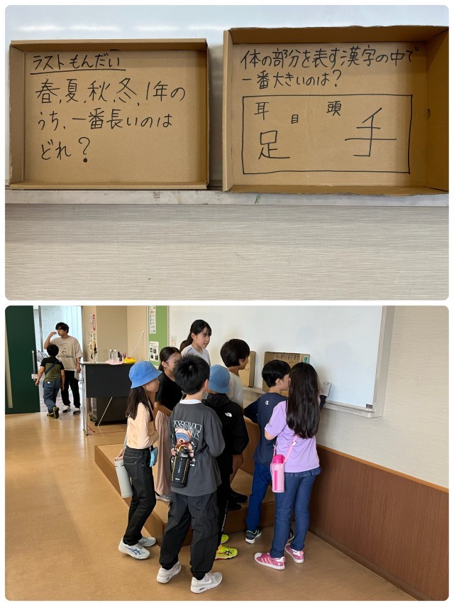 最後は研修室に戻って校長問題にチャレンジ。正解したらお昼のお弁当タイムです。