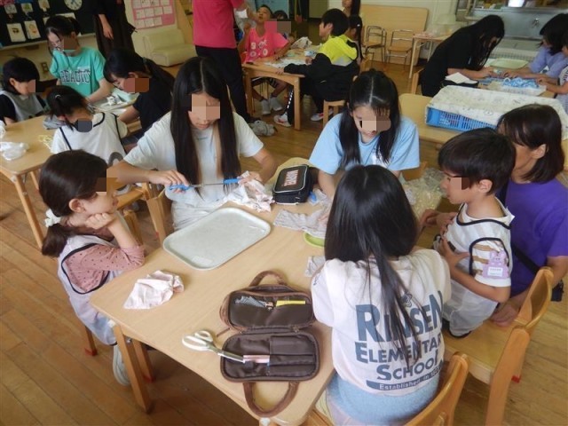 その後、別日に、今度は6年生が幼稚園児たちに教えに行きました。優しく丁寧に教えることができました。