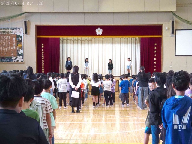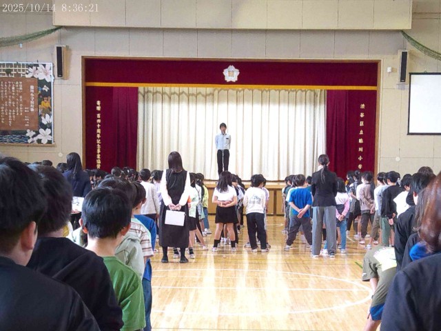 10月14日、後期がスタートしました。体育館で始業式を行いました。後期にしっかりめあてをもつこと、後期はより自分たちで考えて行動できるようにしよう、という話をしました。