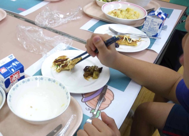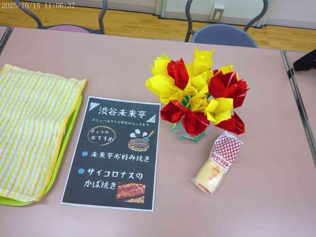 メニューは野菜たっぷりのお好み焼き「未来亭お好み焼き」と「サイコロなすの蒲焼き」です。