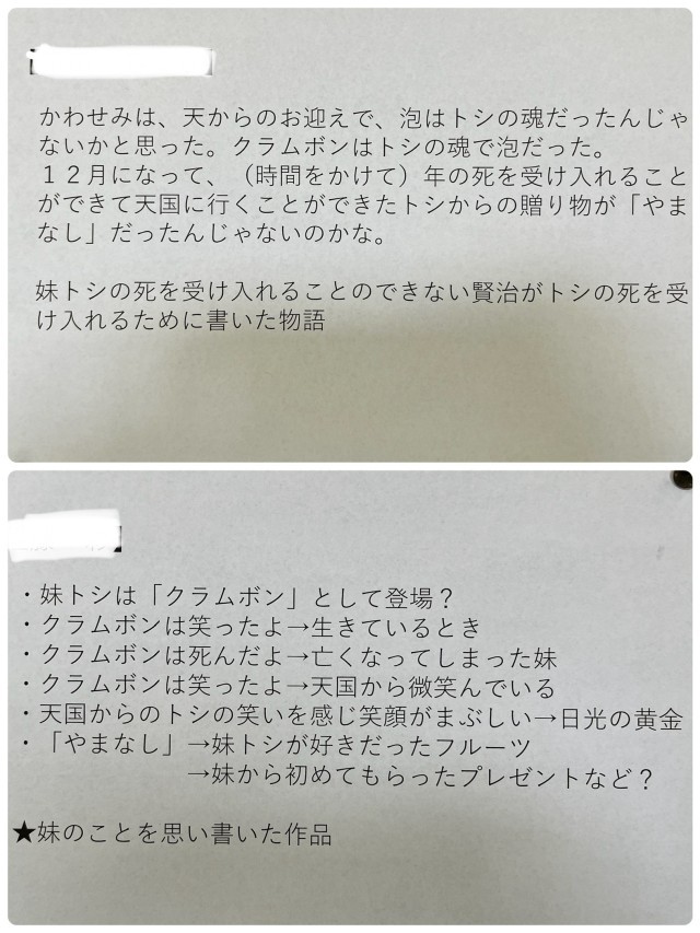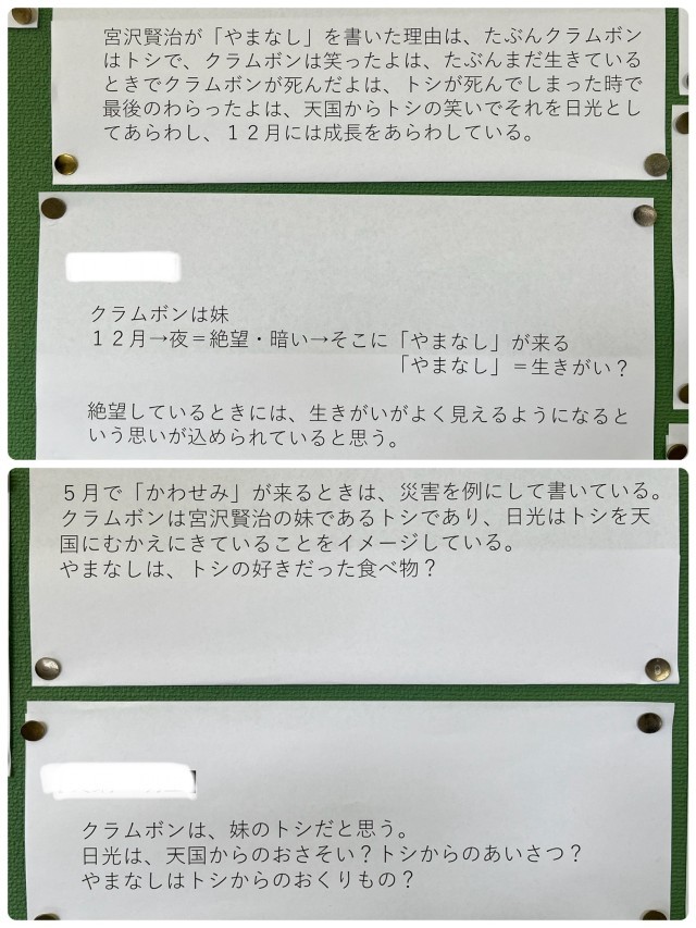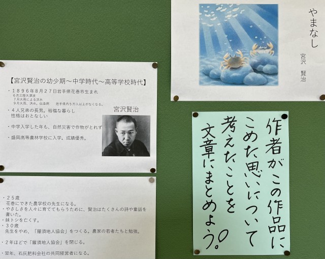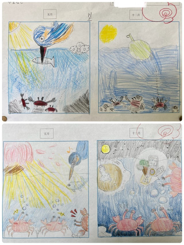 学習の最後にこのような課題を設定し、子供たちは考えました。絵や文にまとめました。