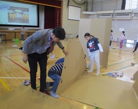 段ボールがどのように作られているのか、段ボールは何でできているのかなど、段ボールを触りながら学ぶことができました。