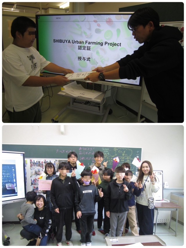 そして、授業の最後には、Shibuya urban farming project公認の認定証をいただきました。渋谷区でつくし学級が第1号です。