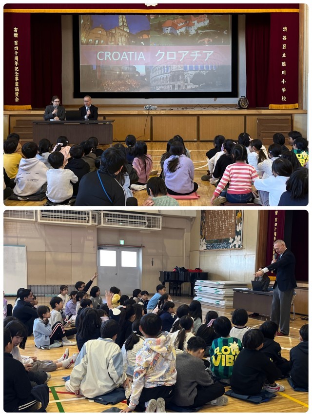 12月5日、3年生がクロアチア大使館との交流を行いました。学区域にクロアチア大使館がある関係で、本校と交流をしています。今回は渋谷区長、教育長も参加してくださいました。