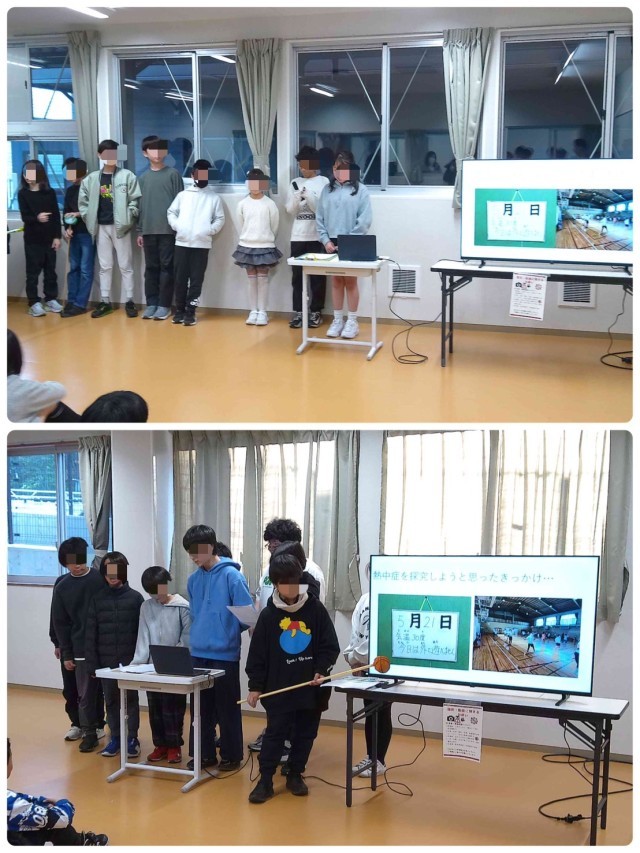 本校の6年生はこれまで、熱中症インフルエンサーとして様々なことを調べ、考え、提案してきました。今回は5つのグループに分かれ成果発表をしました。