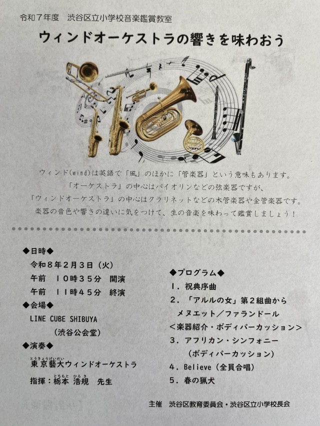 2月3日、渋谷区内の5年生が一堂に会し、ラインキューブ渋谷で音楽鑑賞教室が開かれました。