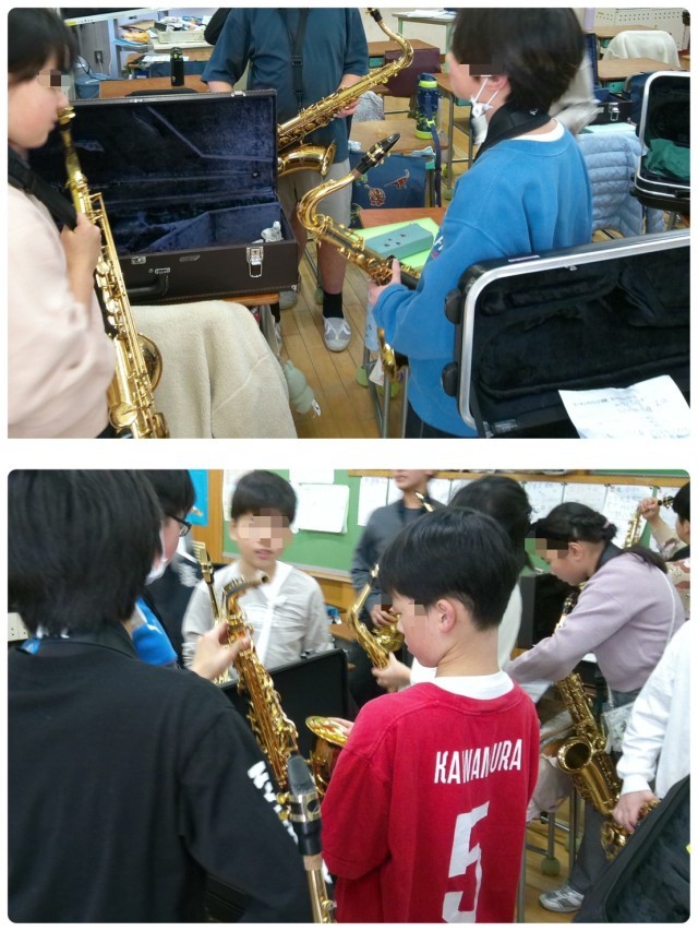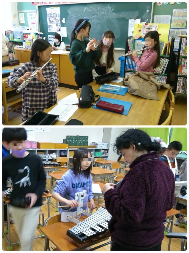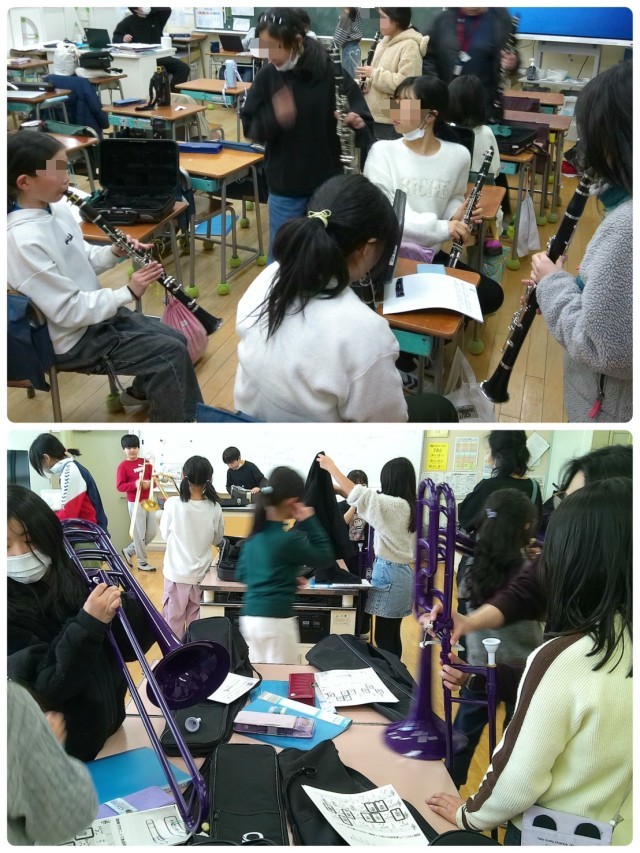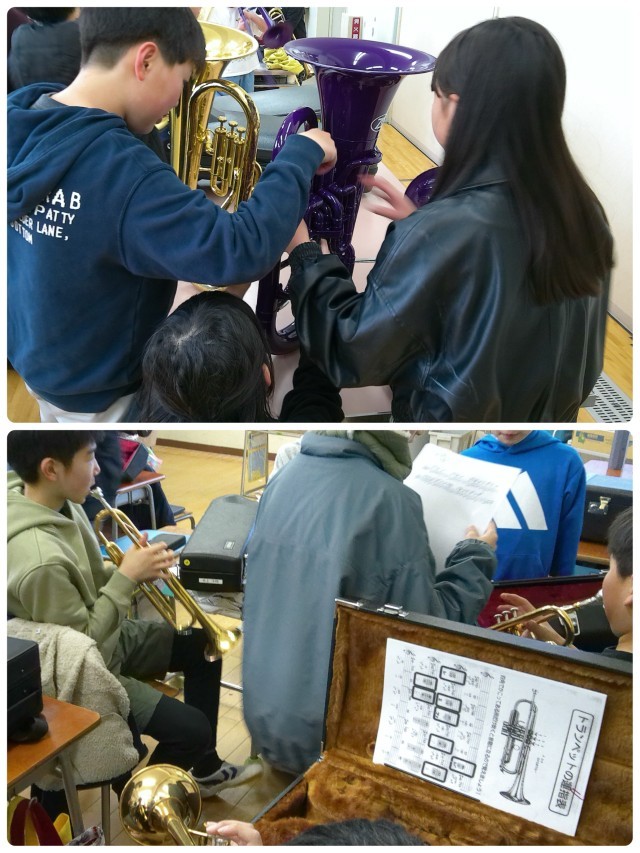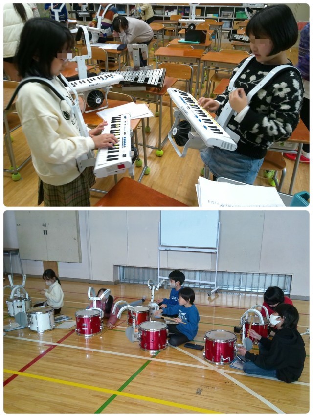現4年生が来年度に向けて新しい楽器を担当することに決まり、マーチング活動は5年生とボランティアと方々が教えにきてくれています。