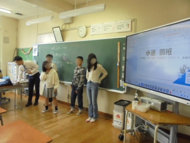 6年生は家庭科の学習で、校舎内の汚れている場所を見つけ、どのように工夫して掃除をしたのかを発表していました。学んだことを自分の言葉で伝えていました。