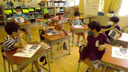 1組 パラリンピック開会式のバイオリニストのことを音楽を通して学習しました。
