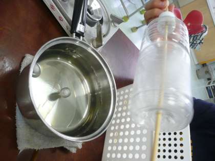 3組 大切に育てたカイコの繭を使って糸取りをしました。
