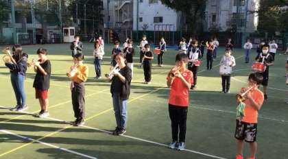 緊急事態宣言の解除に伴い、感染症対策を講じながらマーチングバンド活動を再開しました。久しぶりの楽器練習、子どもたちは張り切って練習に取り組んでいます。11月6日の運動会では6年生、12月18日の移杖式では5・6年生が演奏を披露します。あたたかく見守っていただけると幸いです。