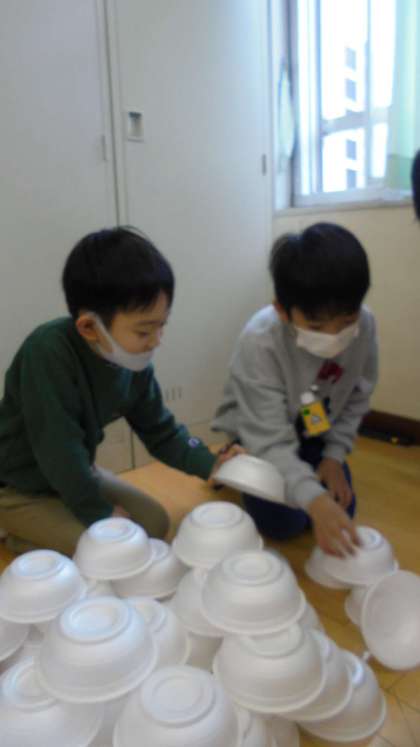 「同じ形がいっぱい!」「どうしようかなあ。」と友達と相談しながら、右に、左に、上に…と重ねたり、並べたり…楽しく活動することができました!