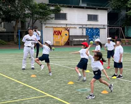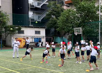 そんな中、体の向きや投げる手と反対の手の動かし方など、正しく投げる型をしっかり学ぶことができました。体育や遊びの時間に生かしていけるとよいです。